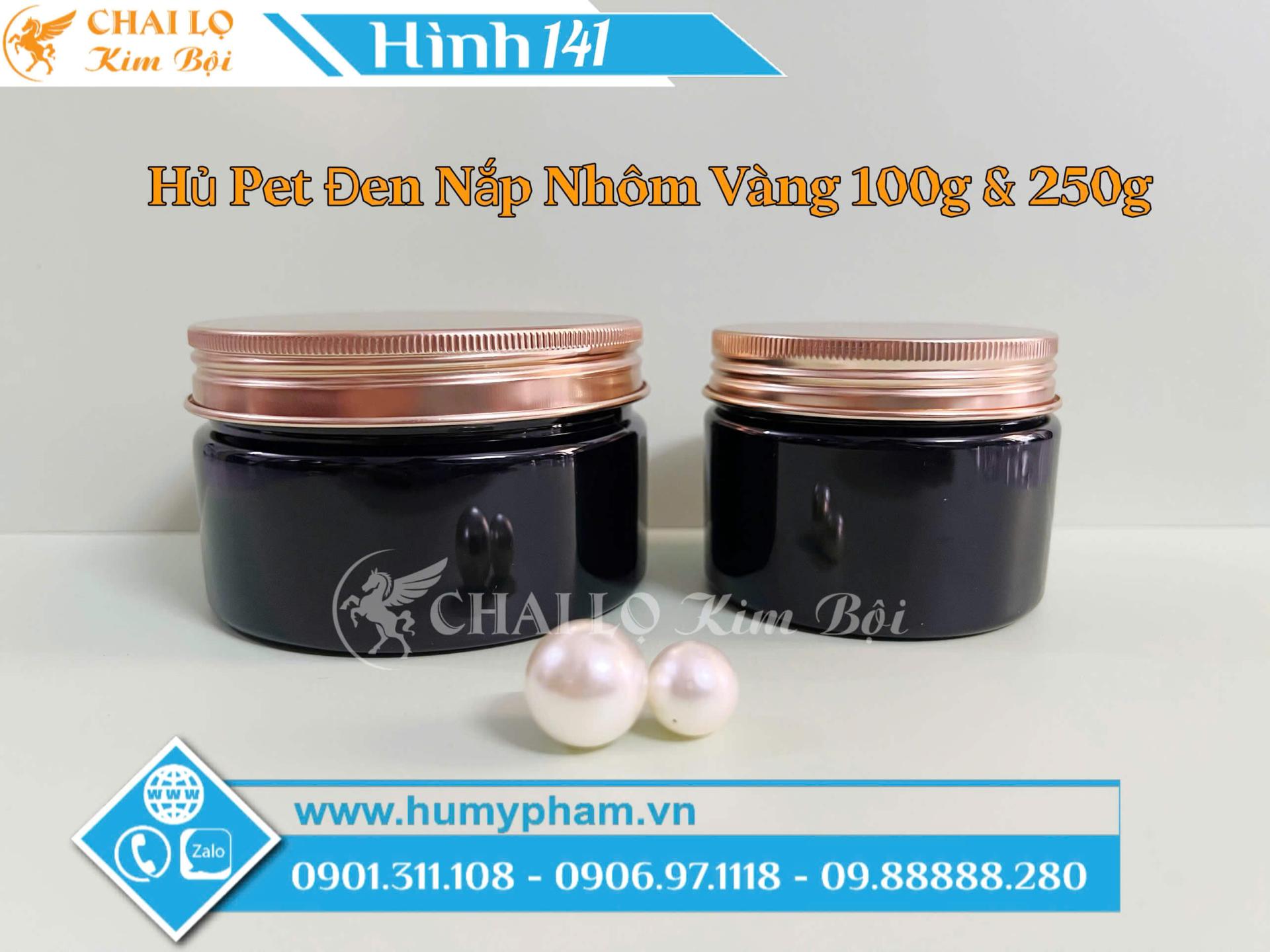 hủ pet đenhủ đựng kem body hủ pet đen nắp nhôm vàng 100g hủ pet đen nắp nhôm vàng 250g