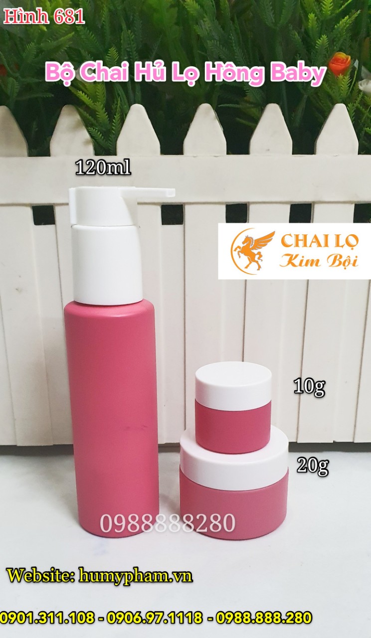 Bộ chai hủ lọ hồng Baby siêu cute vô cùng, hủ 2 size 10g & 30g chất liệu thủy tinh phun màu hồng baby cực kì đáng yêu, chai nhựa Pet cứng cáp cũng phun màu hồng dung tích đựng 150ml.