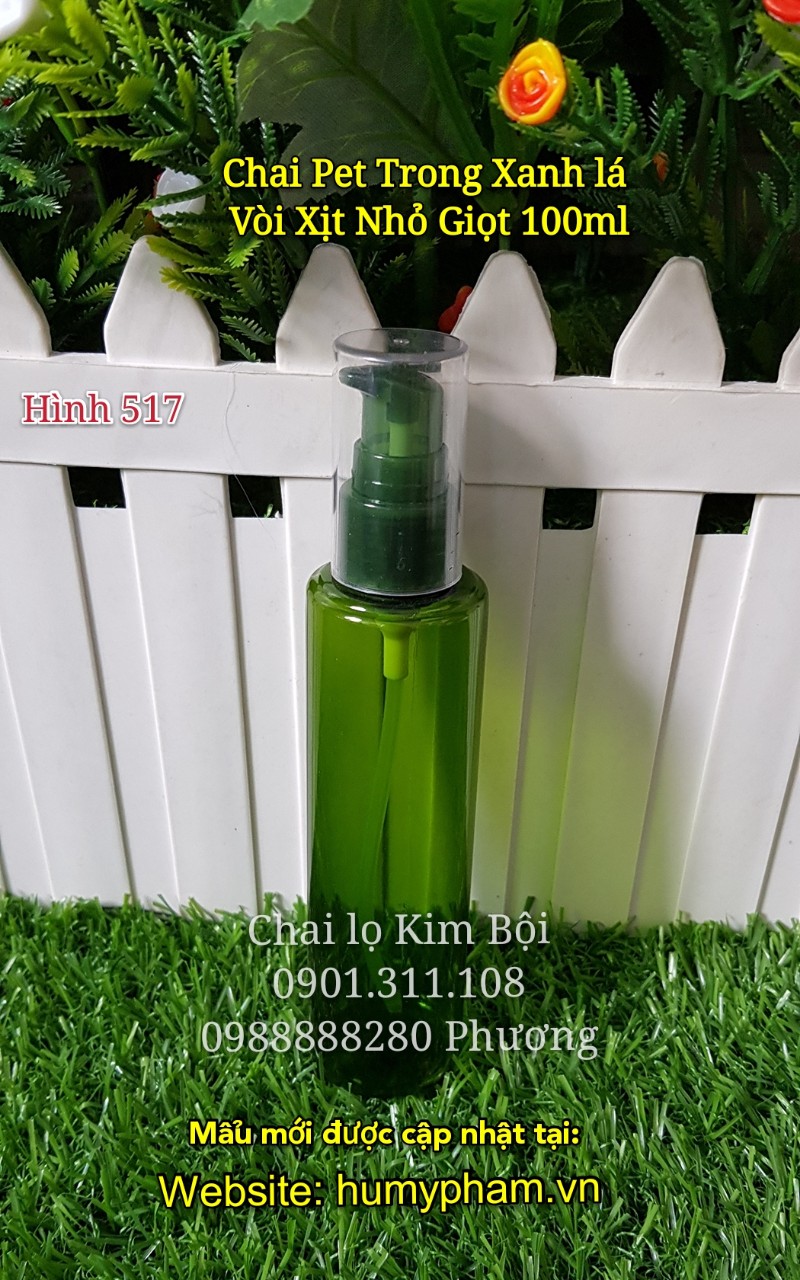 CHAI PET XANH TRONG VÒI XỊT NHỎ GIỌT 100ML, được làm bằng dòng nhựa PET không độc hại an toàn tuyệt đối, chai có vòi xịt phù hợp đựng các dòng kem tắm trắng, kem dưỡng da toàn thân.