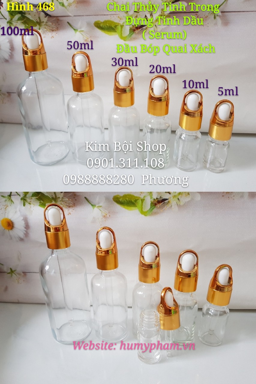 CHAI SERUM TRONG SUỐT 6 kích thước từ nhỏ đến to 5ml 10ml, 20ml, 30ml , 50ml, 100ml chất liệu thủy tinh cao cấp , có ống bóp dễ dàng lấy sản phẩm hơn vừa sạch sẽ vừa tiện lợi, thích hợp để chứa tinh dầu, dầu nền, serum đặc trị...