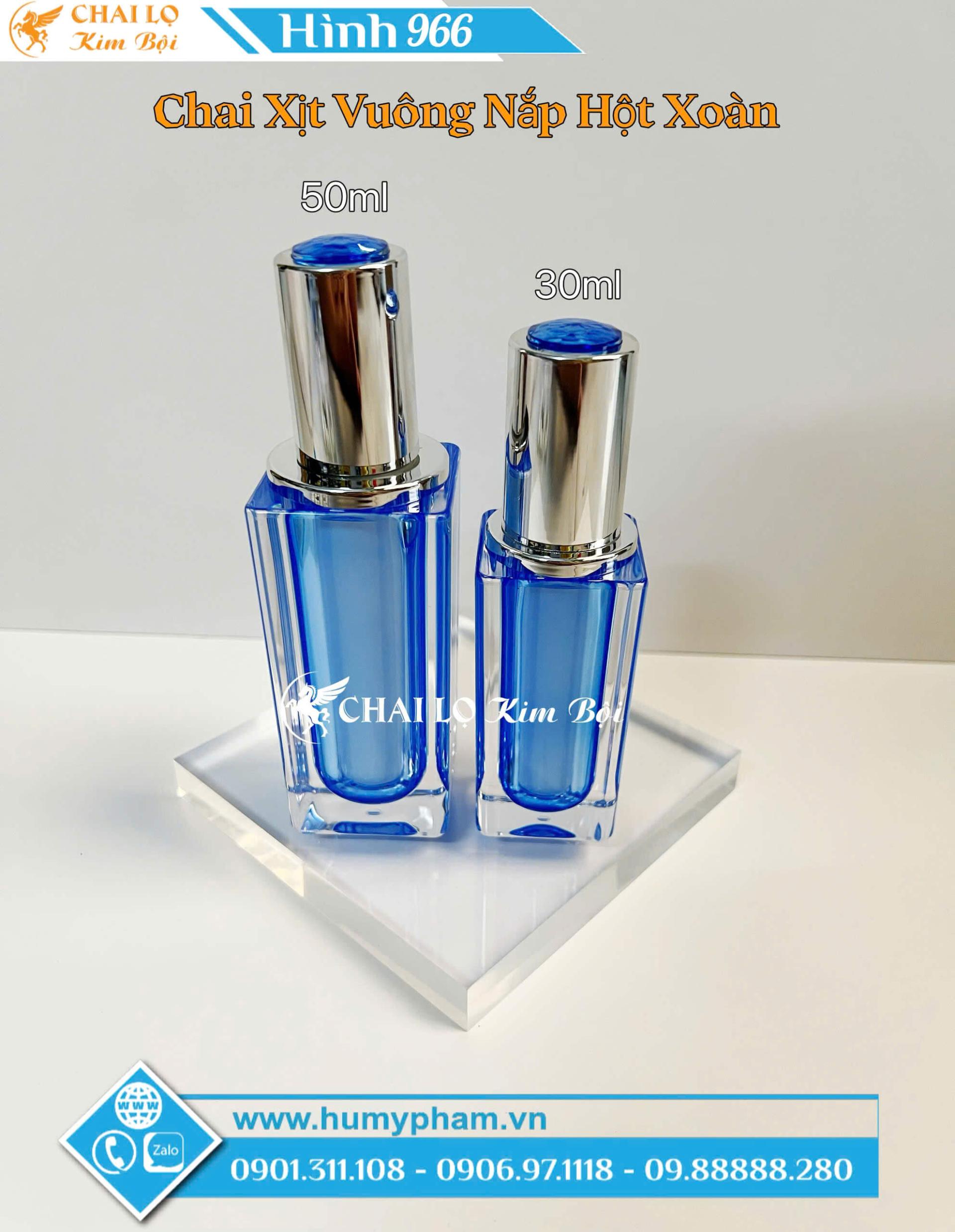 CHAI XỊT VUÔNG NẮP HỘT XOÀN, sản xuất từ chất liệu nhựa ACrylic cao cấp, chai có màu xanh biển mát mẻ, kiểu chai vuông sang trọng, phù hợp đựng serum, kem dạng lỏng. thiết kế nắp chai đính hột xoàn tạo điểm nhấn nổi bật cho chai thêm bắt mắt.