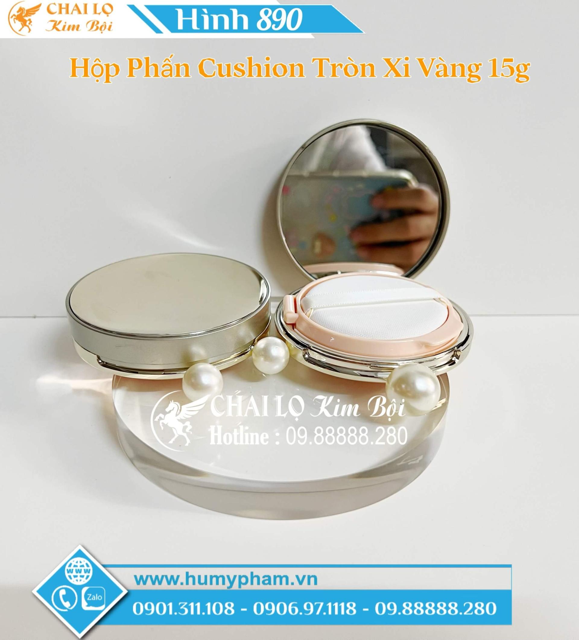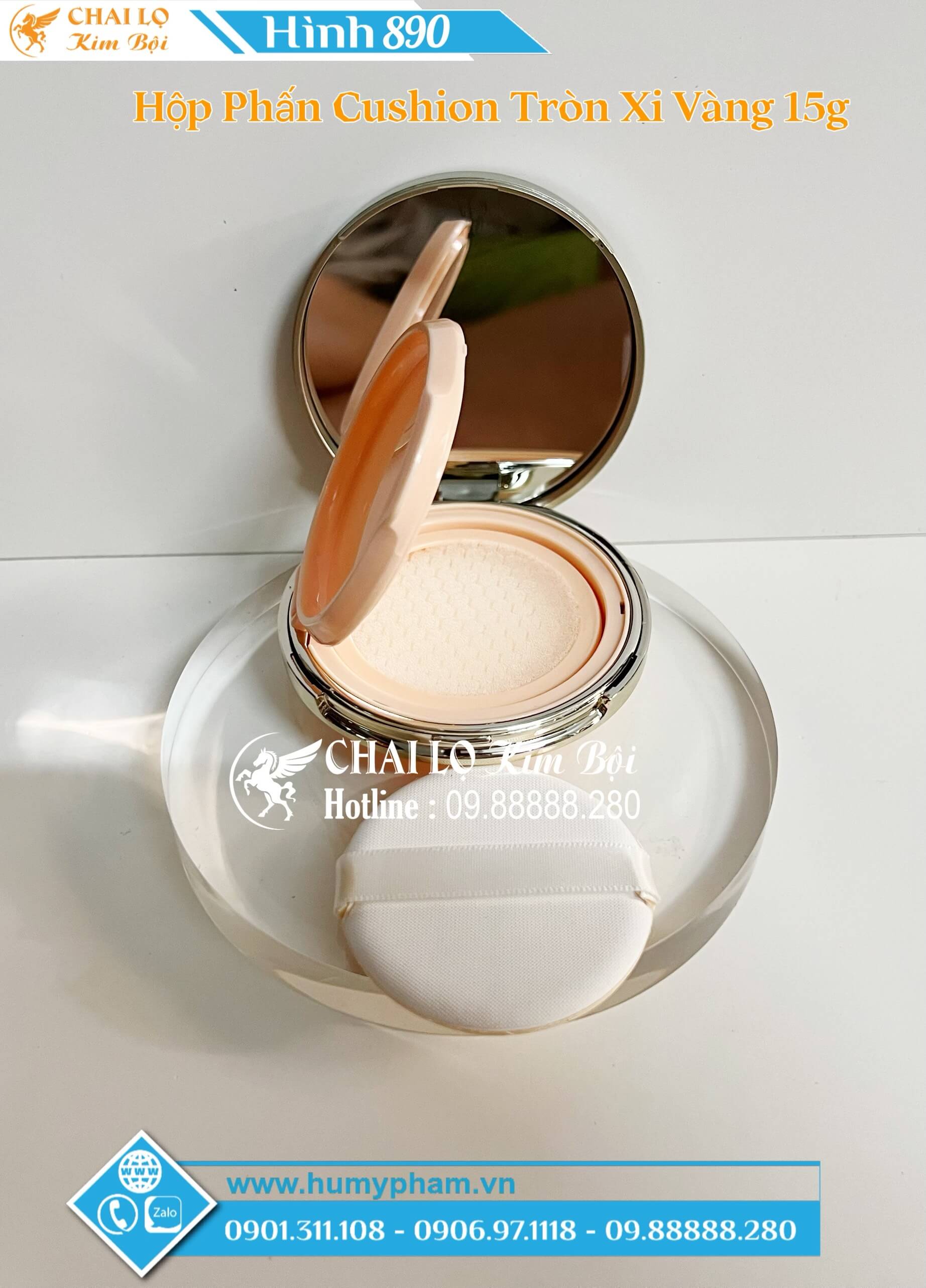 Hộp Đựng Phấn Phủ Cushion Tròn Xi Vàng 15g, làm từ nhựa cao cấp xi mạ vàng óng ánh lớp xi cao cấp chống xước ,có gương soi sắc nét. chuyên đựng dạng phấn nước trang điểm, dung tích đựng được 15g. Đặc biệt tặng kèm bông phấn cao cấp.