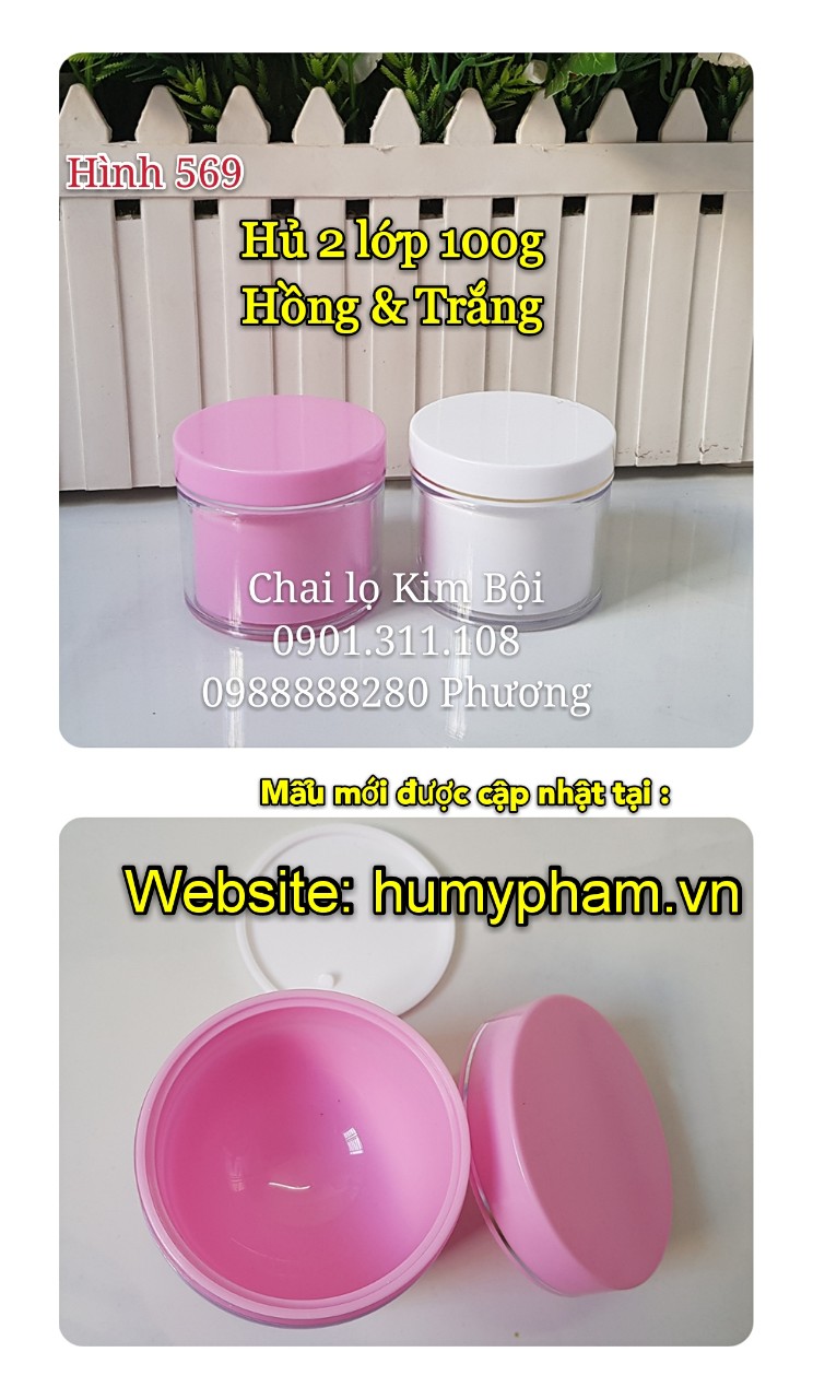 Hủ đựng kem nhựa 2 lớp trong và ngoài, hủ độn đáy nên nhìn hủ to. có 2 dung tích 100g và 200g
