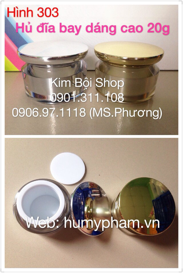 Hủ đựng kem face dáng đĩa bay cao, được sản xuất bằng nhựa cao cấp, có 2 màu bạc và vàng, lòng hủ đựng kem 20g, chuyên đựng mỹ phẩm kem dưỡng da mặt