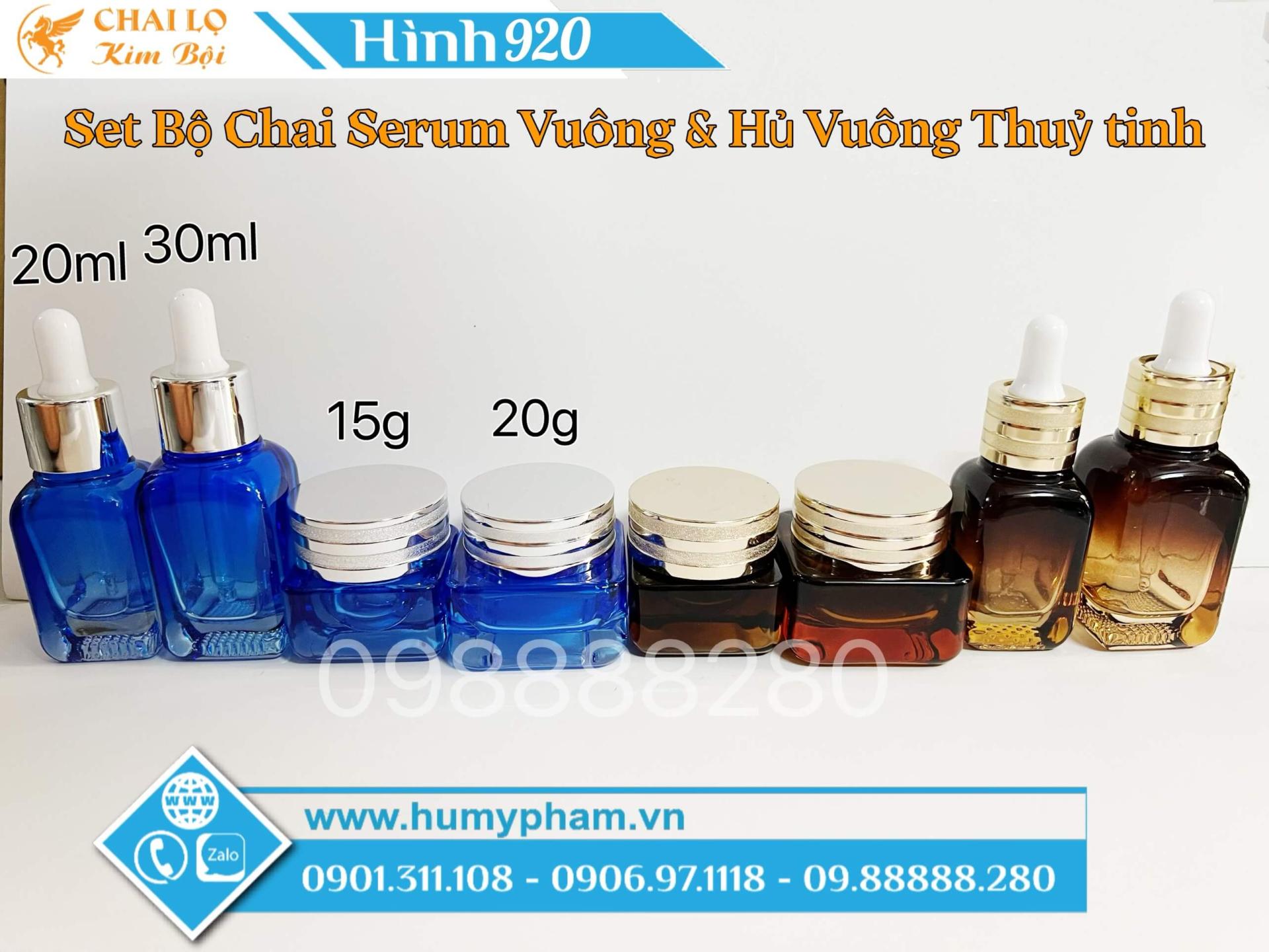 SET BỘ CHAI SERUM VUÔNG & HỦ VUÔNG THỦY TINH, sản xuất bằng thủy tinh dày cao cấp, set mẫu theo bộ gồm chai serum 2 size : 20ml và 30ml , và hủ kem 2 size 15g và 20g, có 2 màu : thân nâu nắp vàng, thân xanh nắp bạc.
